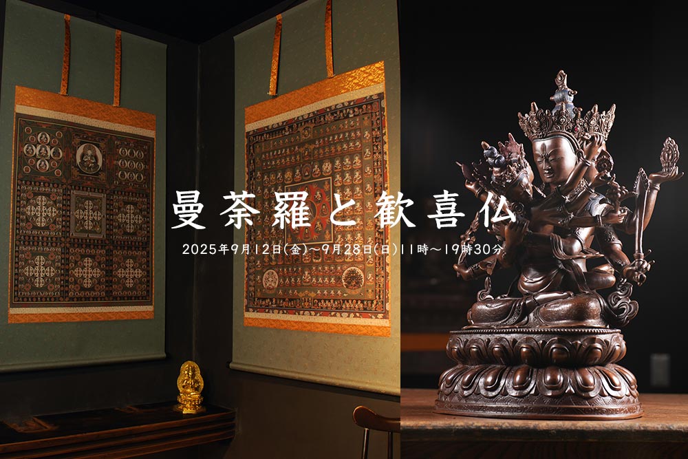 仏教美術を専門に取り扱う静岡県三島市の「仏教美術 天竺」より、密教美術の精髄「曼荼羅」と「歓喜仏」を中心とした仏像・仏画の名品、およそ60点を一堂に集めた特別展示販売会を9月12日(金)より開催します。